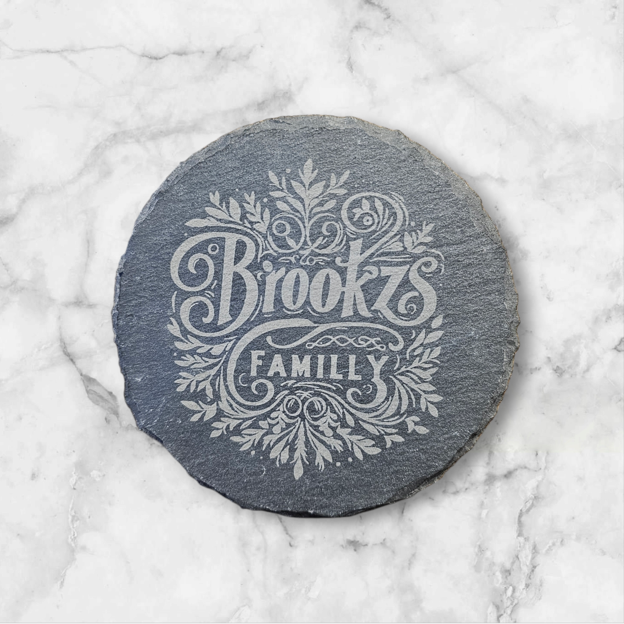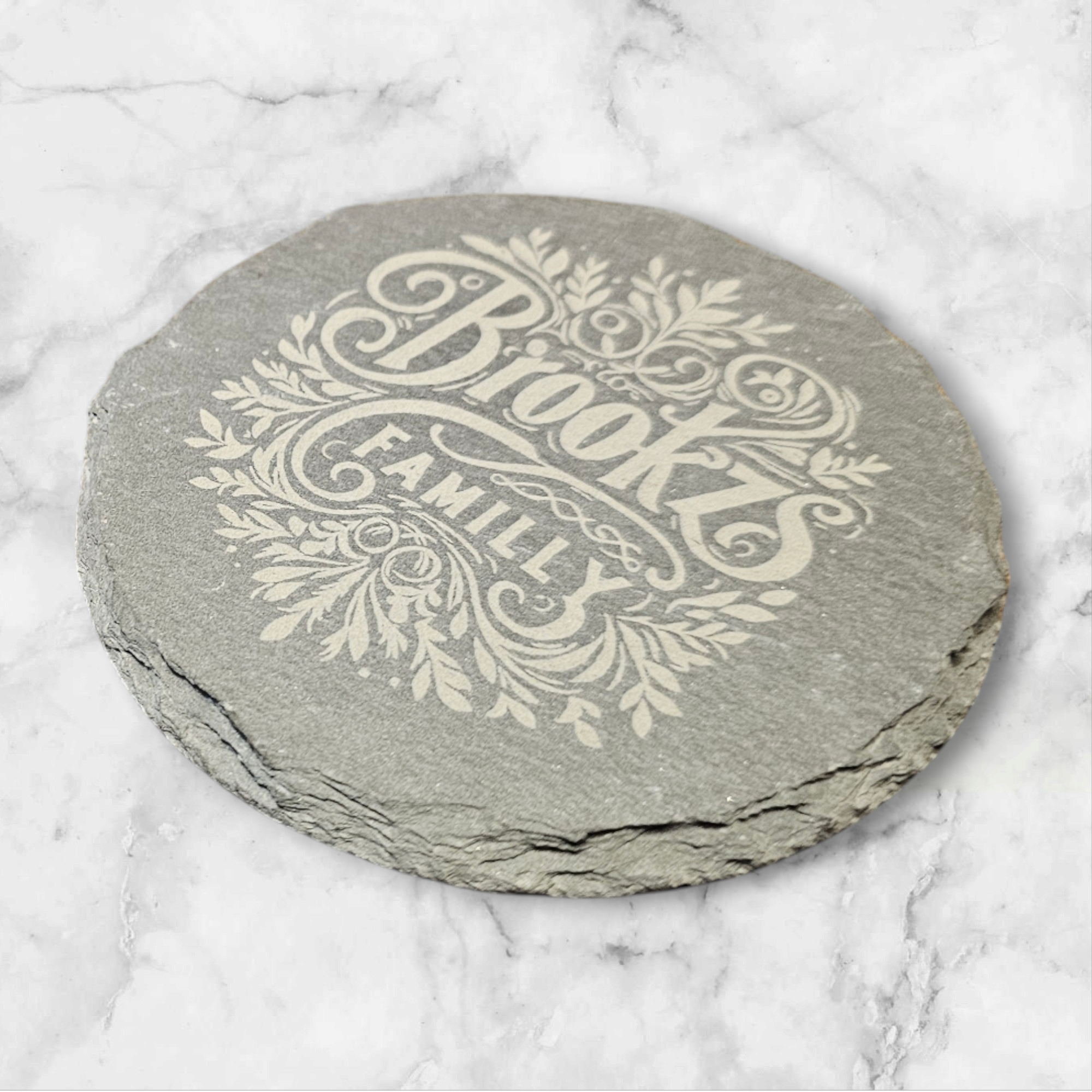 Celebrate life’s moments with a personalized circle slate coaster—a functional gift with lasting appeal.