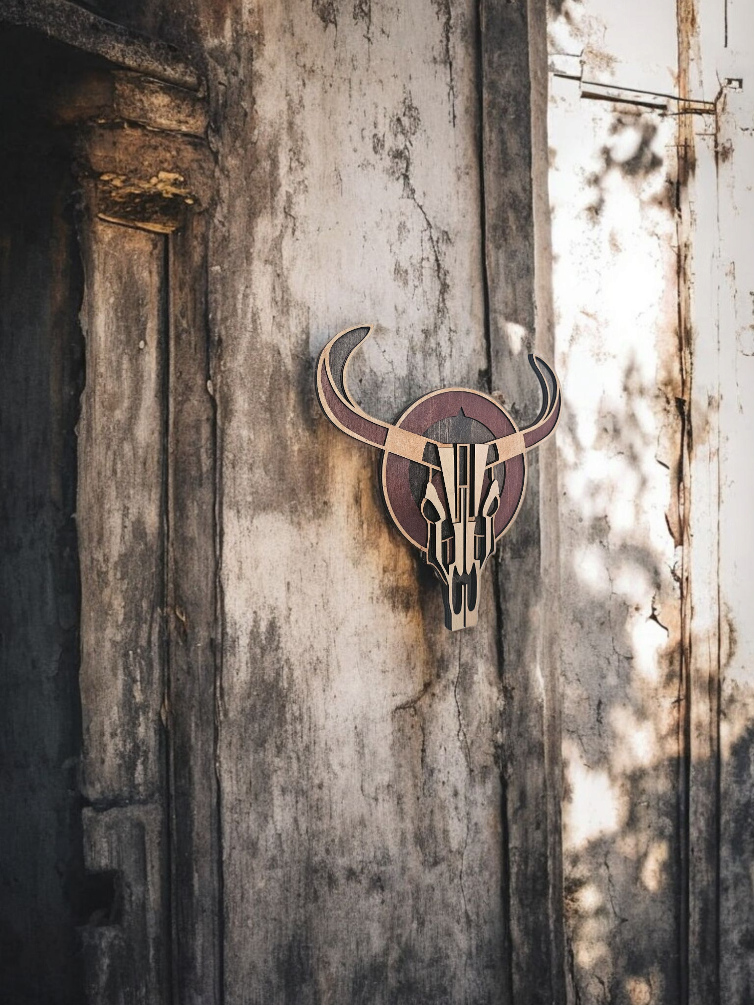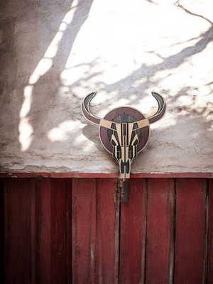Bold and striking, this handcrafted 4-layer wooden cow skull combines rustic charm with clean, modern design. Each layer is laser-cut and stained in complementary wood tones, giving this Western-inspired piece a rich sense of depth and detail.