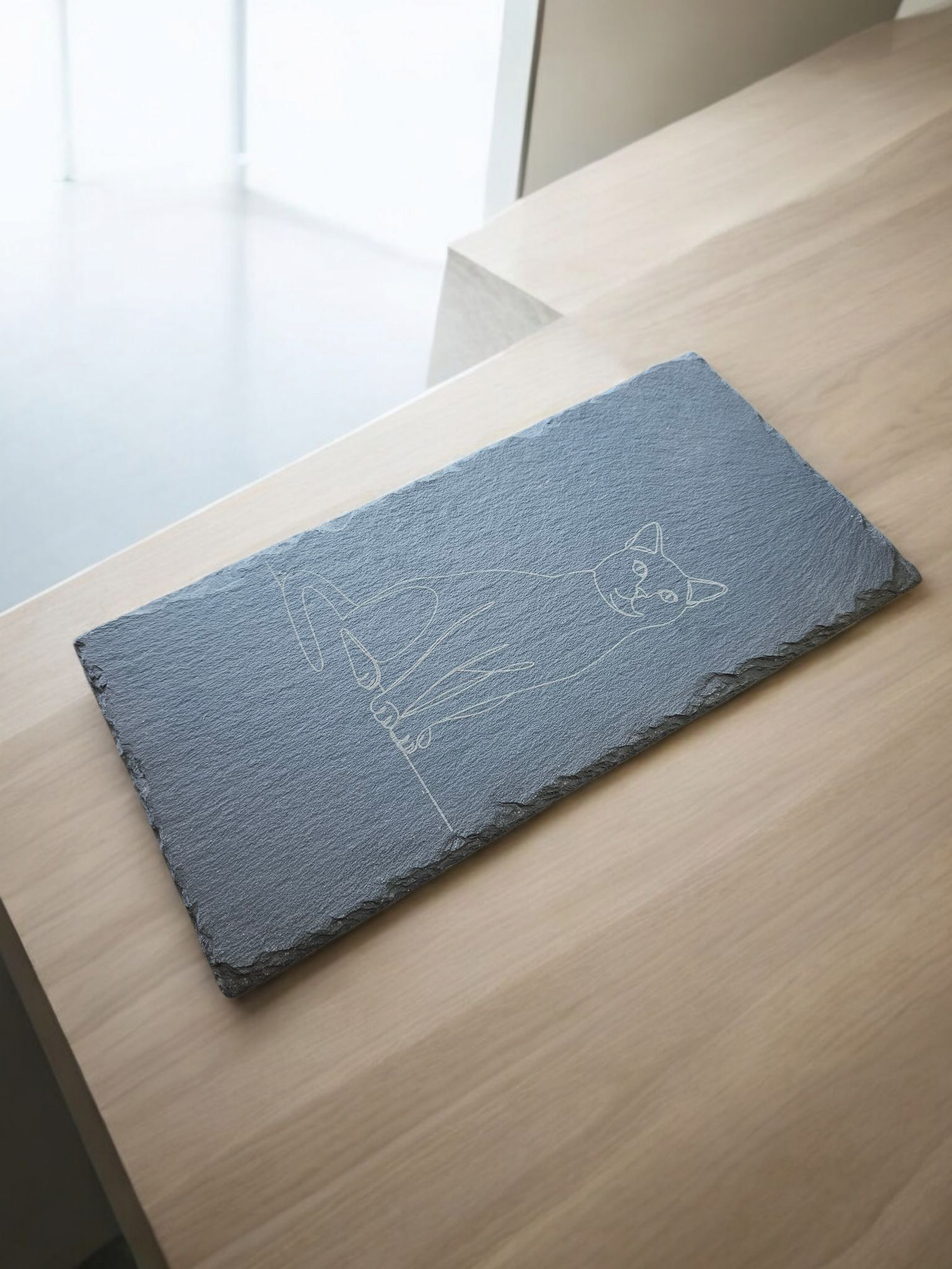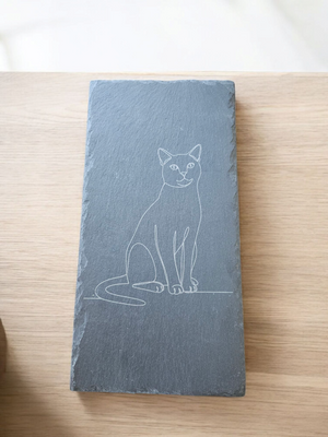 This engraved slate board features a beautifully minimalist single-line drawing of a seated cat. A perfect piece for modern homes, cat lovers, or anyone who appreciates clean, artistic design.