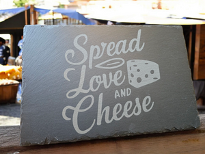• Laser-engraved with “Spread Love and Cheese”