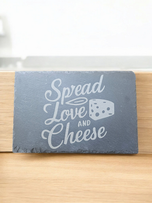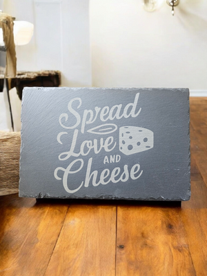 The secret ingredients to a happy gathering? Love, laughter, and a really good cheese spread. This engraved slate board featuring “Spread Love and Cheese” brings cozy charm to any table—perfect for dinner parties, wine nights, or everyday décor.